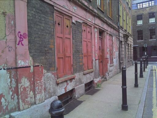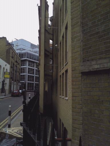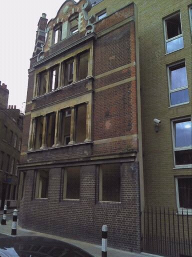 That building facade is a bit of a mystery too, its attached at the rear of the old refuge at the top end of dorset street. It has no windows at all and is held in place via some steel retainers. Its made of brick and stone and seems to have been shored up behind the facia with some sort of protective materials. I have asked at the city of london building that is sited the millers court side of dorset street and the best I got information wise was that its a listed facade and often used as a film location.