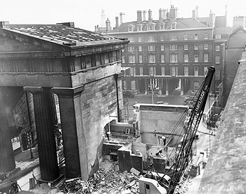 Below is a photo of the demolition in of the Euston Arch in process... what a crime against History and Art!