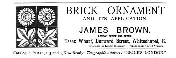 I found this 1902 ad for a company located in the Essex Wharf building that made "Ornamental Brickwork". It was in a journal called 'Academy Architecture & Architectural Review.