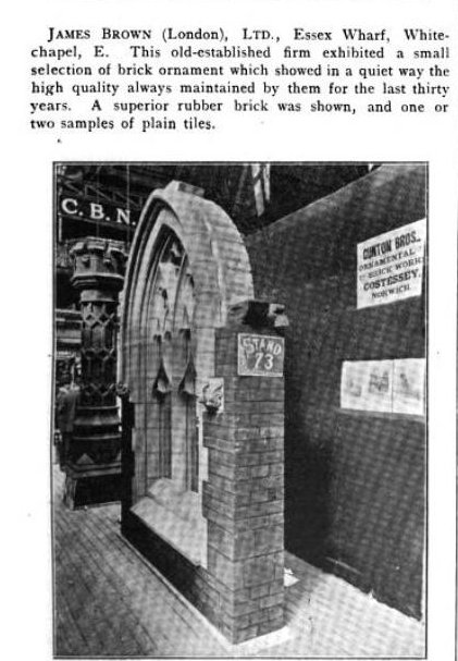 The journal is 'The British Clay Worker', May 1905. The article refers to brick-maker's exhibits, but I'm not sure what the exhibition itself was called. Maybe it was a sort of trade show?