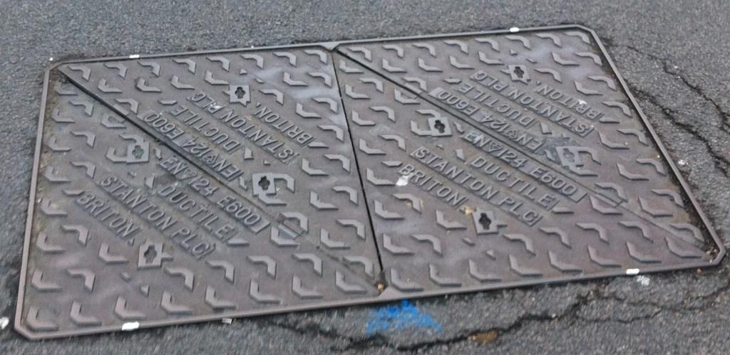 I think the covering in the street is an electricity or telecoms inspection hatch.