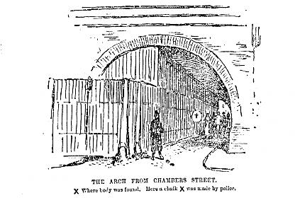 Great selection of images there, Stewart. Like John I'd not seen any of them before (maybe one). It gives us a final ID on the fatal spot. Do I take it from these that the hoarding was on the LEFT side of the arch when standing in Chamber Street? That changes my mental image of it if so (because I'd always thought of comparing it to Abels Buildings).
