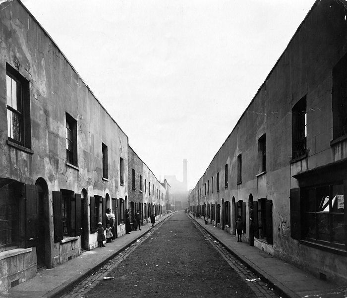 Pereira Street 17 September 1913 just before demolition. Pereira Street ran parallel with Brady Street, the tower in the distance belonged to the Albion Brewery in the Whitechapel Road.