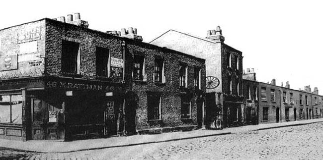 This picture shows a woman leaving Mitre square and entering Mitre Street-she probably cut through Mitre Square to avoid the longer route via the corner of Aldgate at St Botolphs. Kate Eddowes may well have done the same on the night of the double event.
