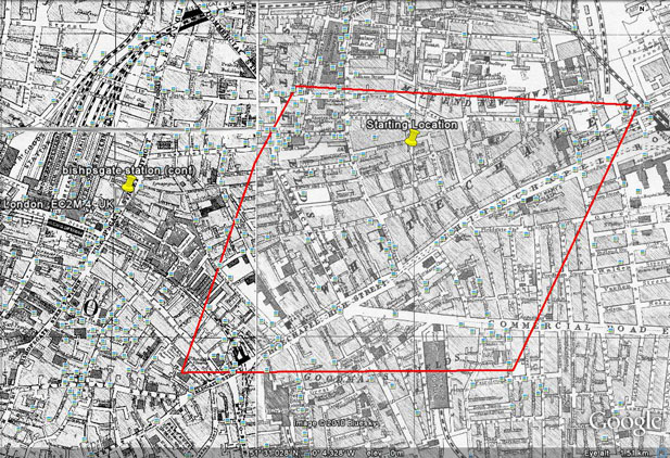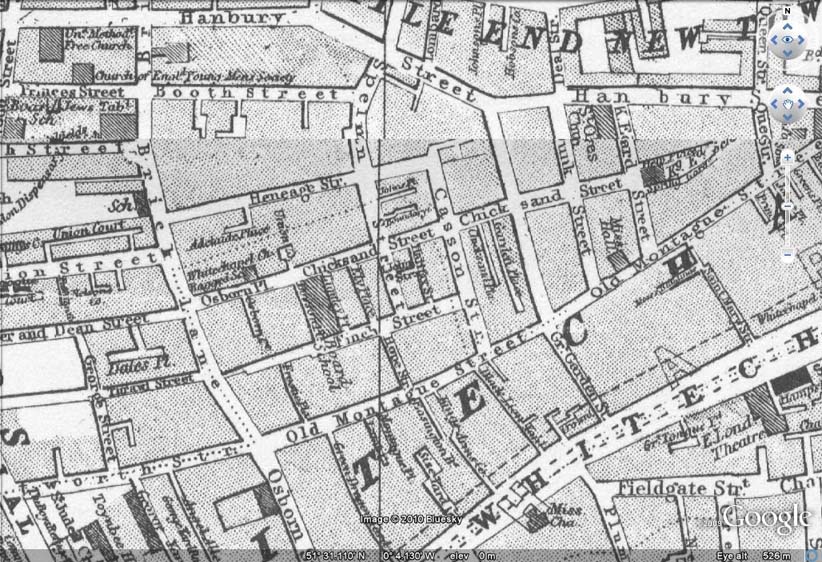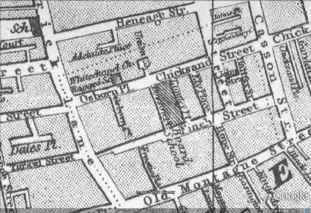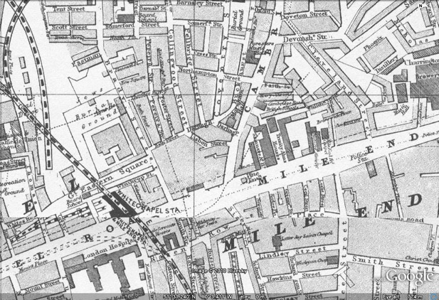 any chance of an overlay showing location at 5 Chicksand Street and 163 High St Road Whitechapel as it was in 1888.