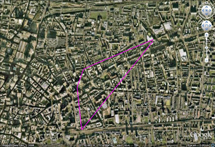 Catherine Eddowes 190 ft from multiple routes (north of)