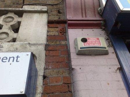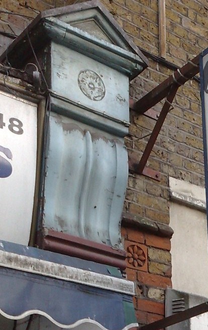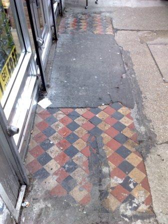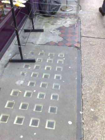 The front range of the buildings along Wentworth Street, on either side of Goulston Street, have the remains of glass brick light wells immediately in front of the shop doorways. These shops are original.