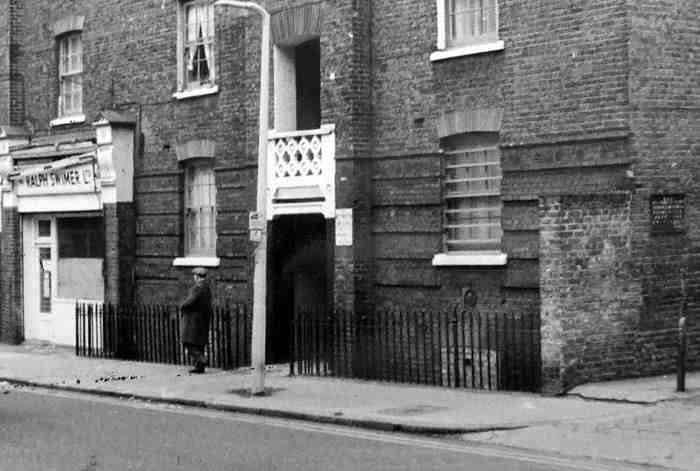 This is an example of how railings would have looked. This is the closest approximation I have been able to find, in Jubilee Street in Stepney. The recess is wider and not so deep as it would have been in front of Goulston Street
