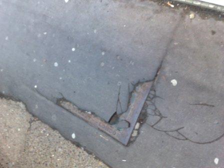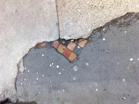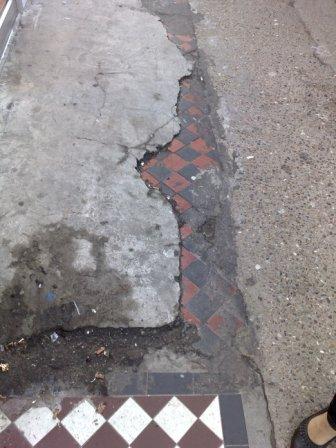 On either side of and around the light well are ornate heavy floor tiles. These where expensive. I suspect the tiles and glass were also added in the 1920s. Most have since been covered over with tarmac that is now crumbling.