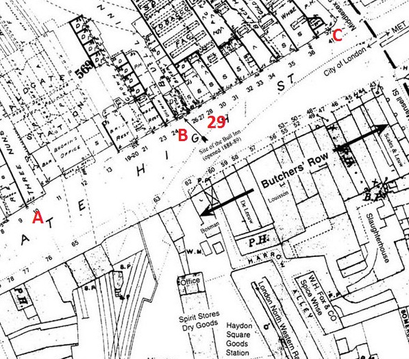 There was no number 29 listed that year. The adjacent addresses were Nos. 28, 30 and 31, a furniture warehouse, ironmonger and tobacco manufacturer respectively.