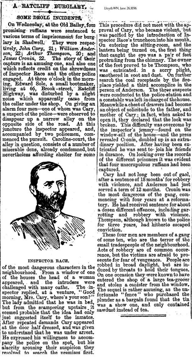 Attached is a 1896 report on Race, after his transfer to Whitechapel.