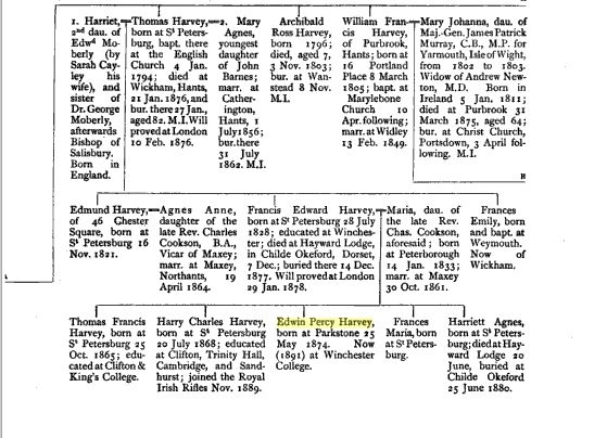 Of course, it is a fairly common name. Montague's Harvey relatives appear to be basically Shapwick farmers. Though they could have been comfortably off enough to send their son(s) to a good school.