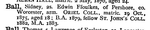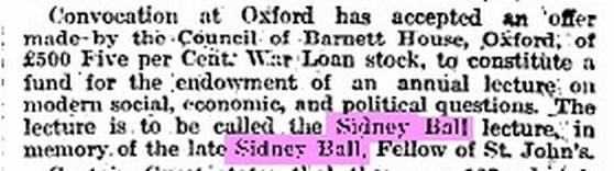 Sidney Ball was one of the very first Oxford students to offer his services to Rev Barnett in 1875 while still a student.I am not at this stage certain whether he was an undergraduate at New College[Druitt"s college] or Barnett"s college Wadham.