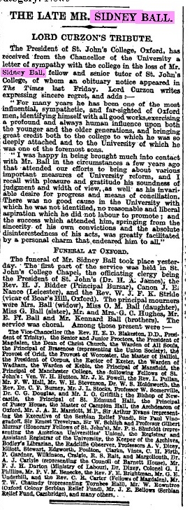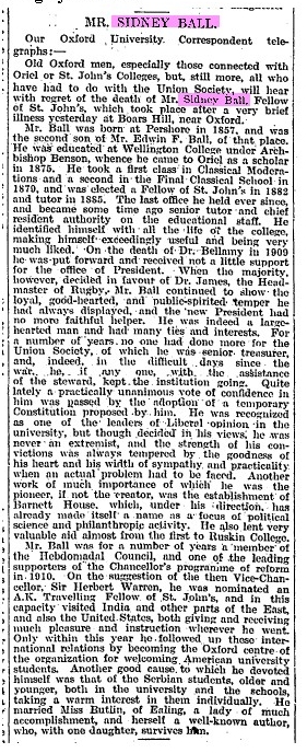 But it was to Mr Sidney Ball,whose alert mind wide sympathies,powers of organisation and fervent practical idealism made him then,as ever since, a strong force for progress....."
