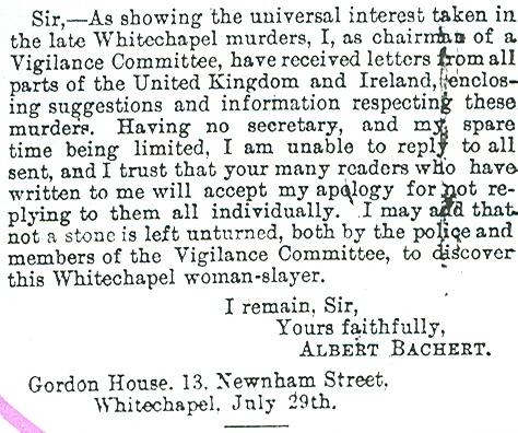 That the Bachert story above was a pure invention is pretty obvious when we see a letter (found by Nick Connell) he wrote, in July 1889, which was indeed just after the McKenzie murder and not in 1891.