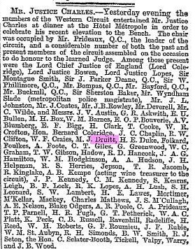 Importantly, is the " Charles Matthews" listed the Home Secretary? If so, we have Druitt on the same circuit.(There is a C.W.MaThews - one 'T' - in the 1897 Western Circuit Law List.