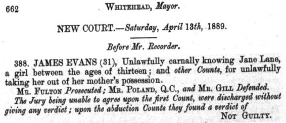 ...but I found this, against a certain "James Evans" in the Old Bailey records for April 1891: