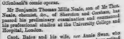 With looking for exam pass announcements in the papers I'd check by the surname Neal and Neale and use the keyword 'surgery' ; 'my' logic being that describing himself as a 'surgeon' in 1891 he'd have had to pass an exam in surgery between 1881, when he's listed as a student, and 1891, if he was legitimate.