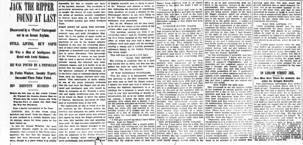 Recently I came across this also from Howard's excellent website published by the Evening Telegraph on November 27, 1888: