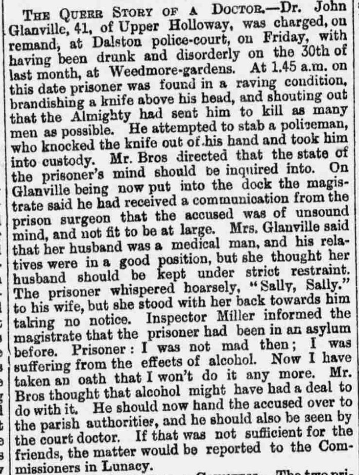 1895 GLANVILE John of Painswick House, Burnham, Somerset, retired surgeon who died on 14 October 1895 at Brislington, Somerset. Probate at Wells on 21 December to Forest Ashfield Glanvile and Richard Ranulph Glanvile, gentleman, effects £152-2-8.