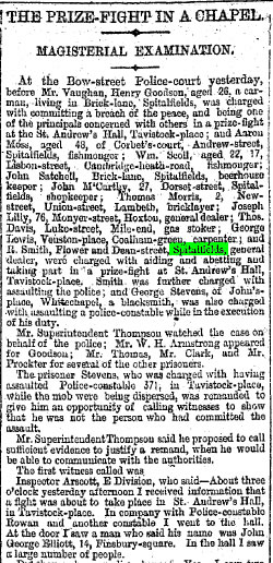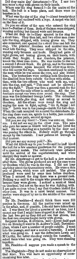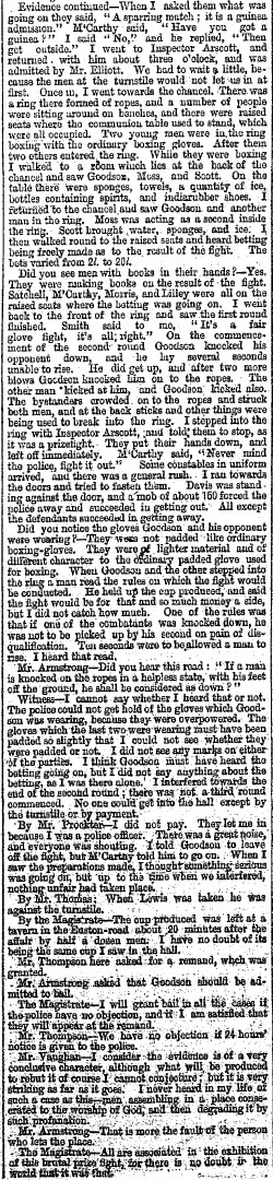 6--The illegal boxing match I referred to. Character witness by P.C. Thick, indicating he was in good with the police for some reason. Can anyone find the source on Thick's testimony?