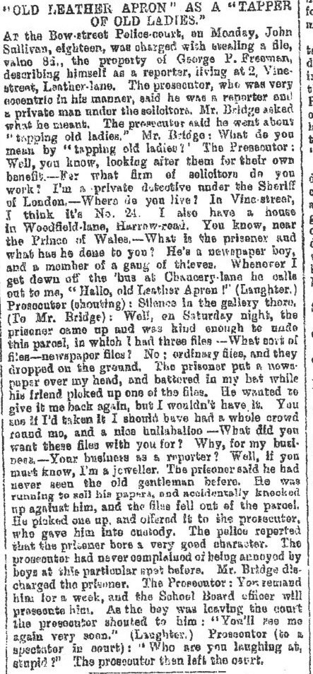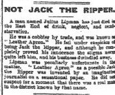 Lipman was peculiarly unfortunate in the matter. “Leather Apron” as a possible Jack the Ripper was invented by an imaginative journalist on a sensational paper. He did not suspect for a moment that there was a real man in the district known by that name.