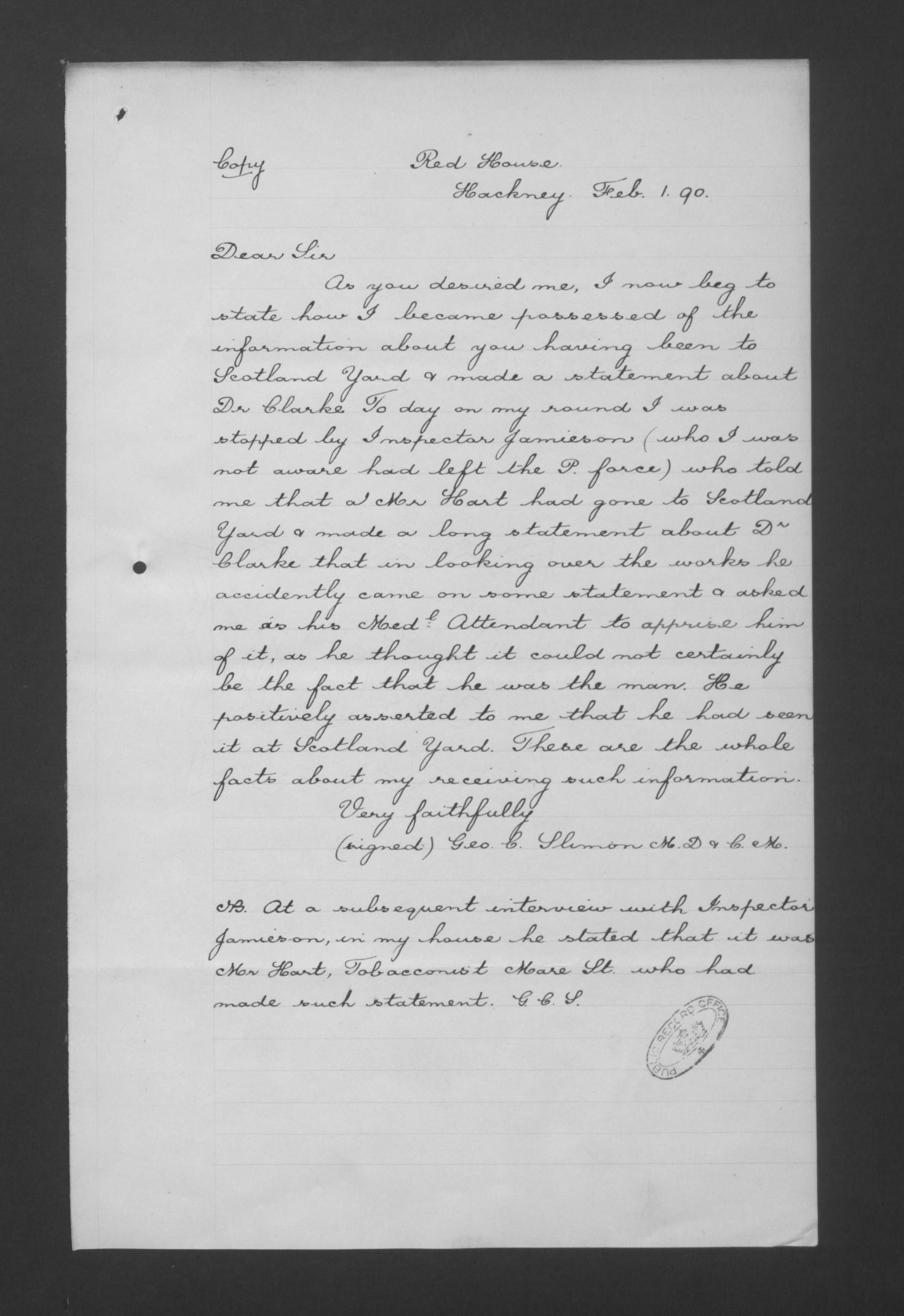 Clarke, B., & T. F., Arbutus Place, Upper Clapton, and Glenavon, Stoke Newington, surgeons.