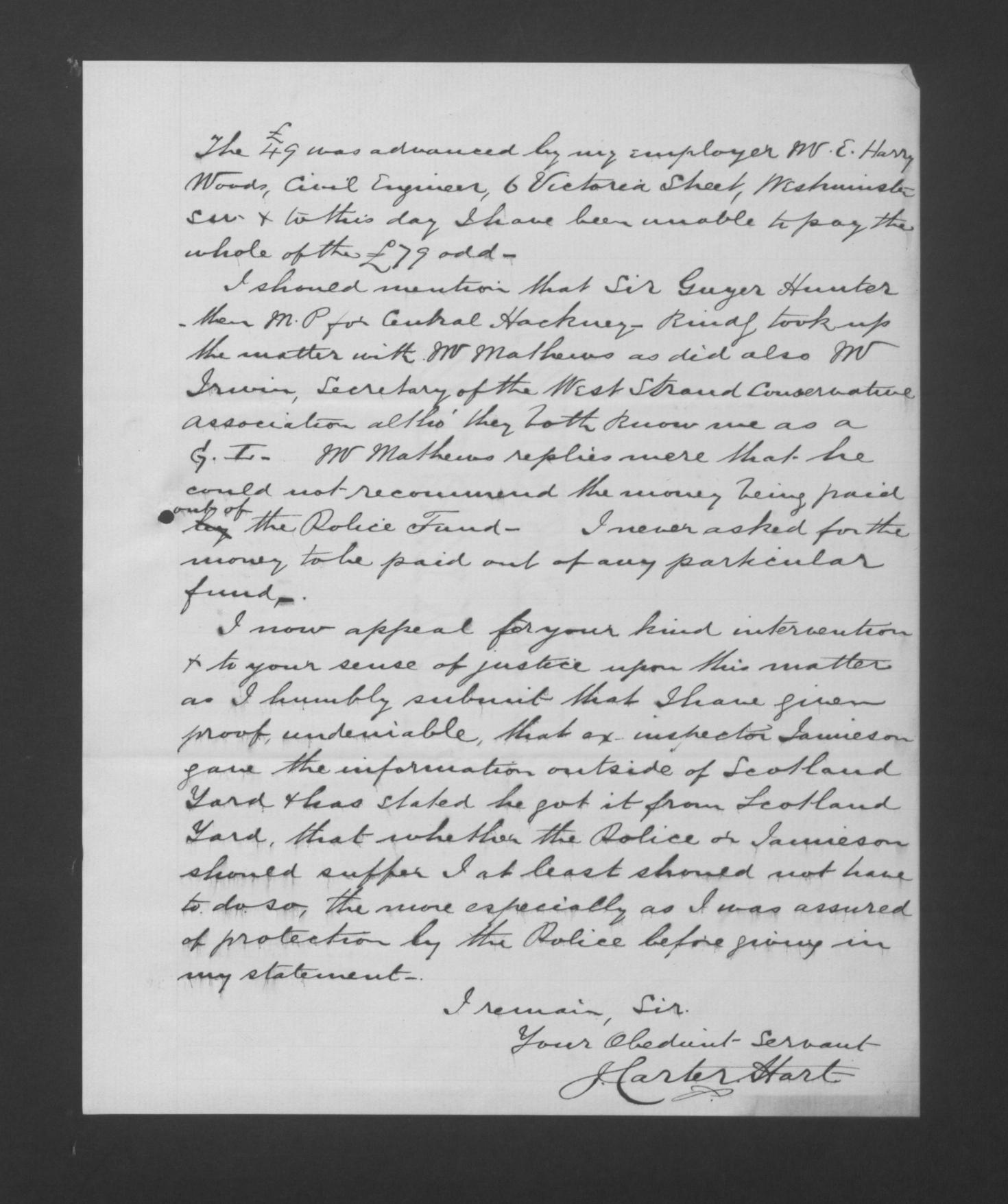 The Conservative MP for Central Hackney and the Secretary of a Conservative Association had helped Hart even though Hart was a "G.L." [Gladstonian Liberal?]