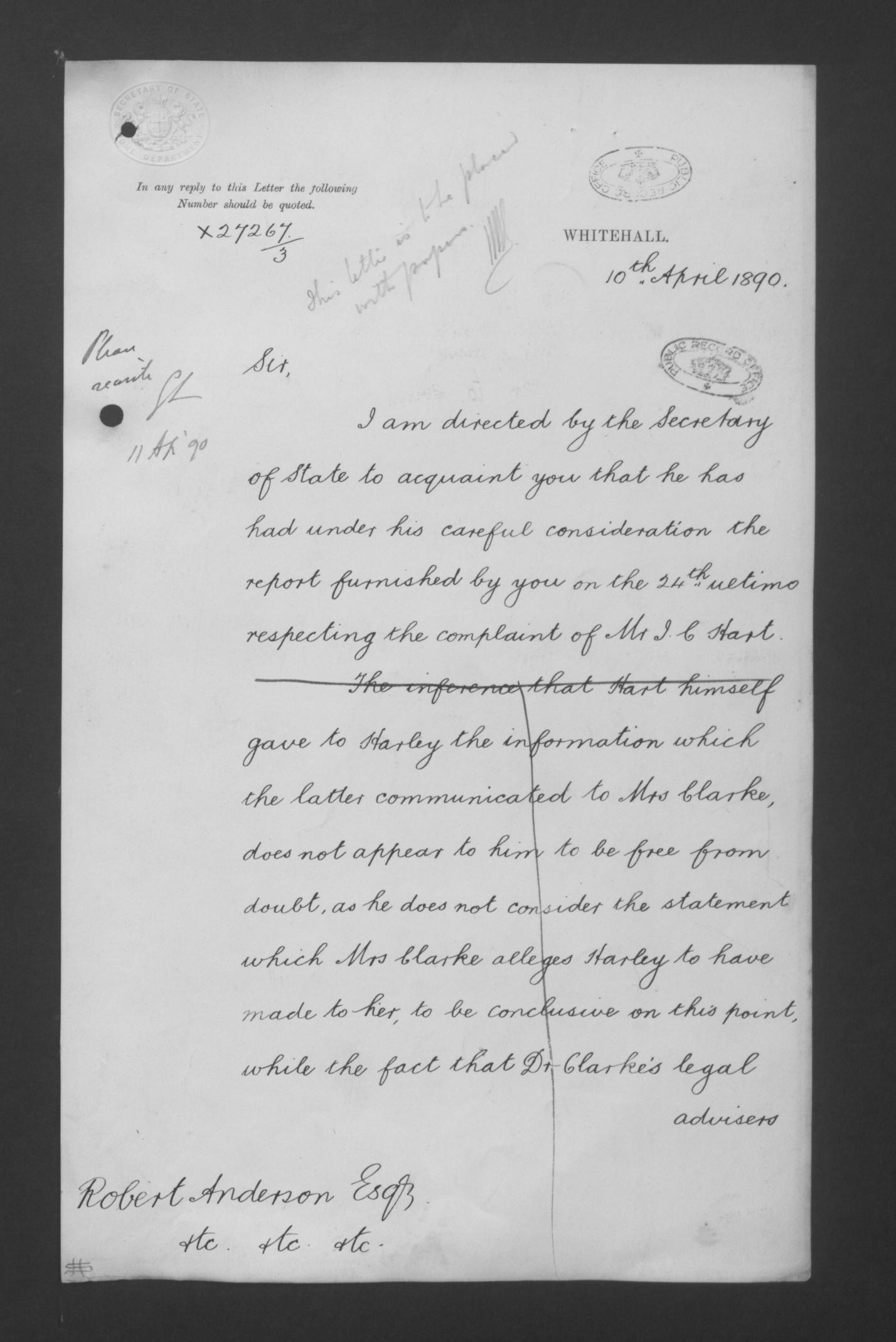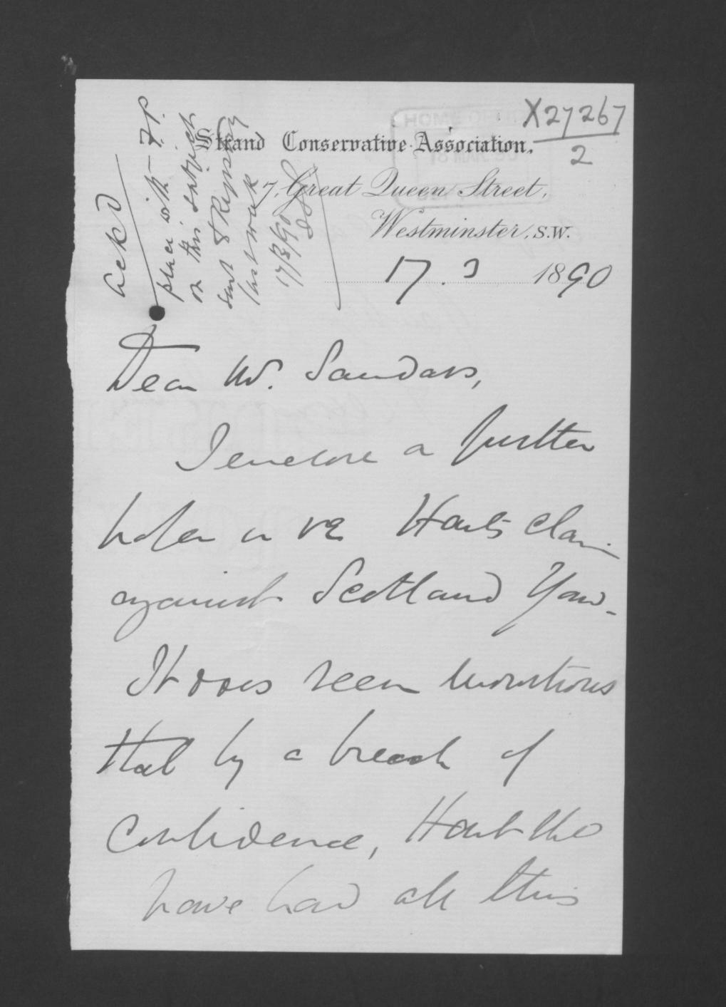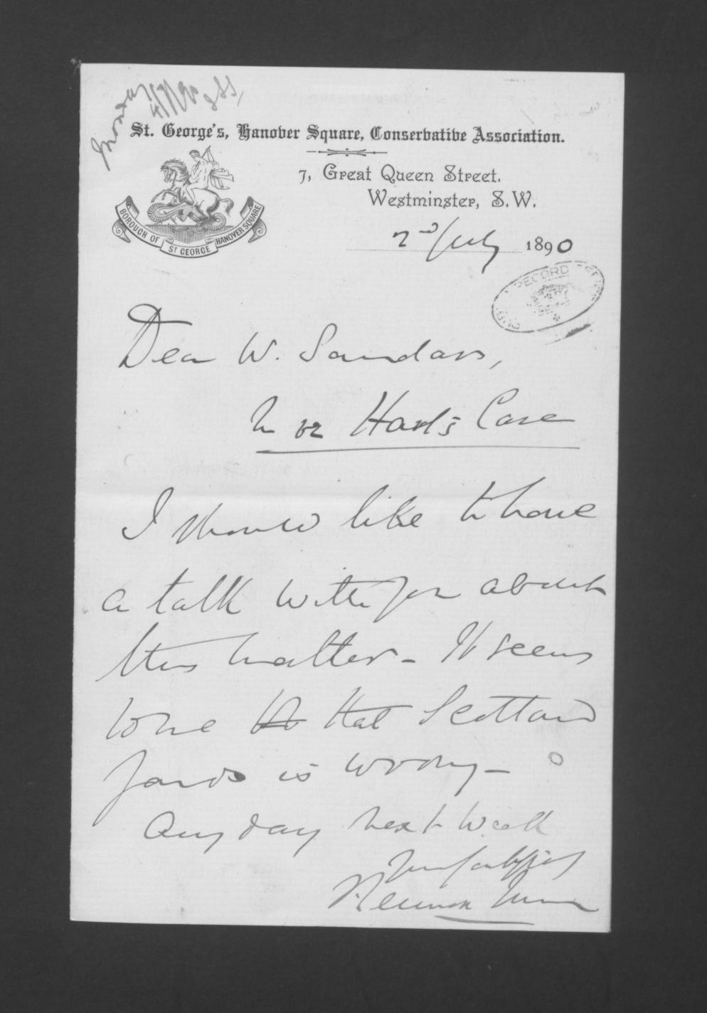 HO 45/9969/X27267 Lennox to Sandars April 2, 1890 (Front)