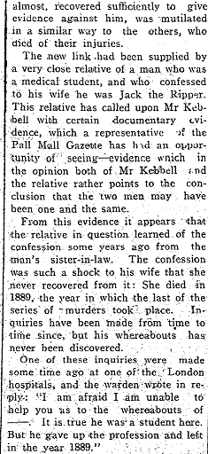 6th, That after the police declined to adopt my suggestions I published my clue, after giving them due warning of what I intended doing, and that from that time up to the present no more murders were committed.-Faithfully yours,