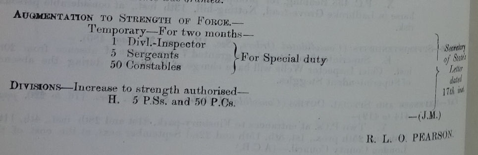 After stating: "Last Monday, by order from headquarters, the extra forty were withdrawn", which is presumably a reference to Monday 15 July 1889 bearing in mind that the report is dated Saturday 20 July 1889, the report continues: