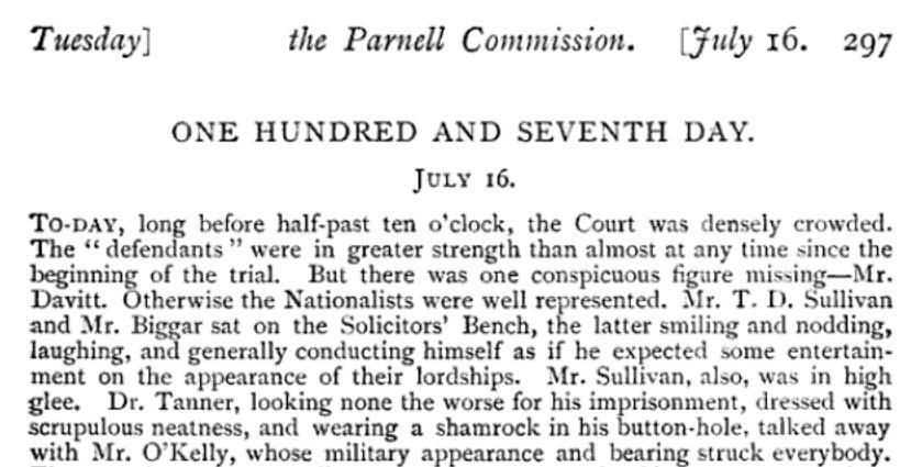 I'm not sure actually that both those press reports relate to the Parnell Commission, but that isn’t actually very important for the issue at hand. I also notice the use of the term ‘military form’ which is a clear indication of physical build and is also clearly linked to the term ‘military appearance’ rater than ‘military bearing’.