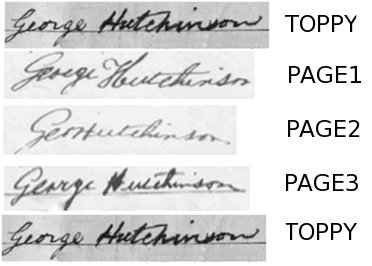 Here's the "Toppy" sig found by Debs, and the three "George Hutchinsons" from the witness statement, comme montage: