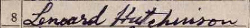 An observation: As Toppy listed his son ""Lenoard", he did so with a bridging between the "t" and the "c" that does NOT appear in ANY other of the signatures. Suddenly, the "t" does not display the soft bend into the "c" that is consistent in all other examples of his writing Hutchinson ( and in the police report page three signature).