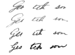 Thanks for that...but whilst I agree that there are similarities, I wouldn't find this surprising. Certainly, the same person penned the name, but I still suggest that the consistent components in a signature (usually the first letters [and I do agree that the 'G' is similar in all three witness sigs, but not the Toppy one]) differ from specimen to specimen. The points of similarity you highlight also happen to be fairly common ways to form letters, and fairly common letter combinations. Looking at them in the way you have done is very useful when trying to ascertain whether the same person penned them, and it seems very clear that the first three share the same author. But in looking at a signature, I think it's more common to look at elements like a) whether the whole name is signed and not just initialised anywhere; b) how the entire signature is formed (and whilst this can be constrained according to the space permitted, it's reasonable to expect this space would be similar on pages 2 and 3 of the statement). These are not consistent specimens when you look at their entire execution.