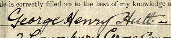 So, the "G" fluctuated between "open-loop" and "closed-loop"... but then, so did Hutt's. Note, also, that Hutt's lower-case "t" changes between the two samples, whereas Hutchinson remains faithful to his "top-launched t" throughout - and we can confirm this across multiple samples, thanks to his not using "ditto" marks when he wrote the surnames of his wife and children in 1911.Kind regards, Sam Flynn