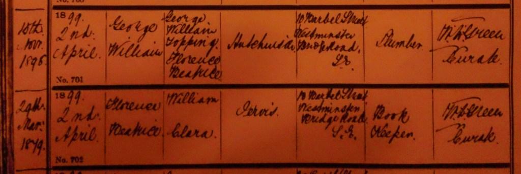 Toppy’s wife Florence Beatrice got Christened at the same time – her birthday is given as 29th March 1879 so yes she was 20 when she got married.