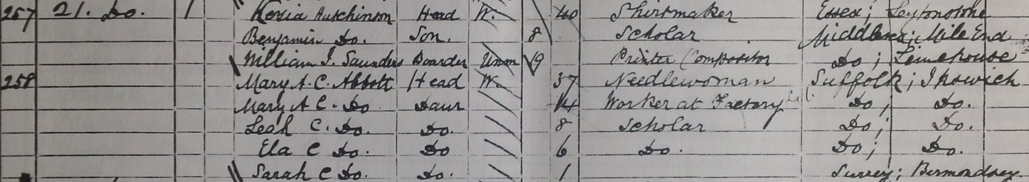 They had a boarder which would have helped with the bills – William Saunders, a printer compositor aged 19 from Limehouse.