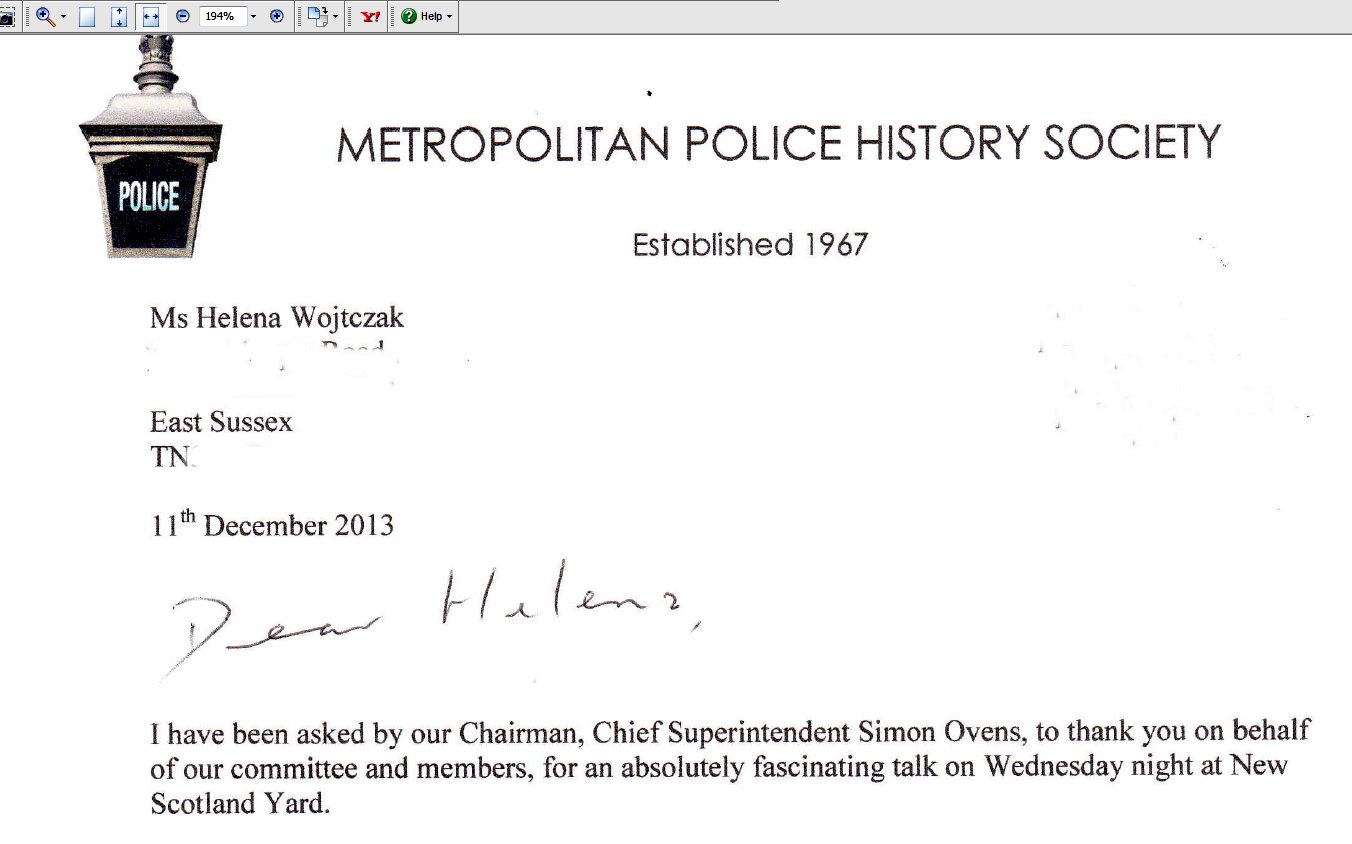 I've received an email from the Crime Museum asking me to give a talk to the Metropolitan Police History Society (MPHS).