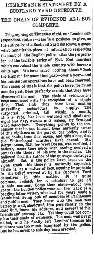 One swallow does not a summer make, and one newspaper-owning Tory MP may not brown the bread, but when you put Maclean's story, given "on the authority of a Scotland Yard detective", together with all the other contradictory stories [there was a corker in April the same year about JtR being a Belgian] from Scotland Yard detectives, that bread most decidedly turns to toast.