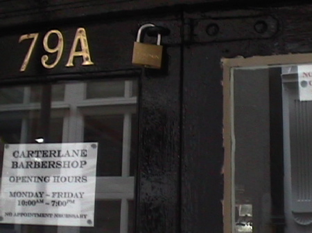 Well that was a bit farcical----sorry about that.Dont know quite what went wrong but I was trying to edit some photos I posted ages ago -at Christmas-anyway-this is one of the Barbers shops in Carter Lane -where Jacob Cohen lived.It was built before 1840 so was there when Aaron was walking the dog that belonged to Jacob Cohen.Both Jacob and his dog lived in Carter Lane,a place that still has several Barber shops of that time still oprating.