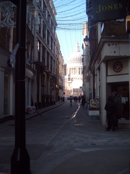 narrow streets leading off to St Paul"s Cathedral