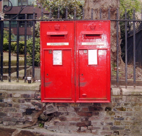 2] Two Rare examples of Victorian posting boxes still in use in Square behind Cannon Street Station-ie Lawrence Poutny Square,which is also close to Cheapside.-photographed today.