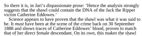 If it's really 'mirrored' then it suggests folding of the shawl after the stain got there, and before it dried. It doesn't suggest the thing was just screwed up any old how. Now the way I'd fold it would be to fold it in half and then do that again, and again.. I'd have mirrored the stain on the end of the shawl that is now missing. My mum would have folded it the same way, as would my first wife, and my current one.