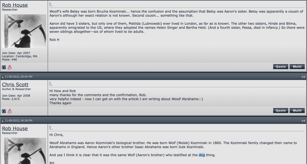 What is required is something more. Firstly, clear provenance regarding the scarf so that we can at least postulate that the genetic material may have been deposited in 1888. Secondly, some nexus connecting Kosminski directly to Eddowes or another victim.