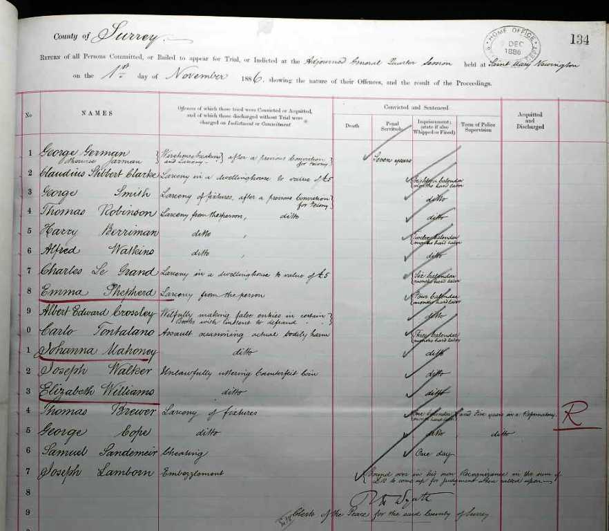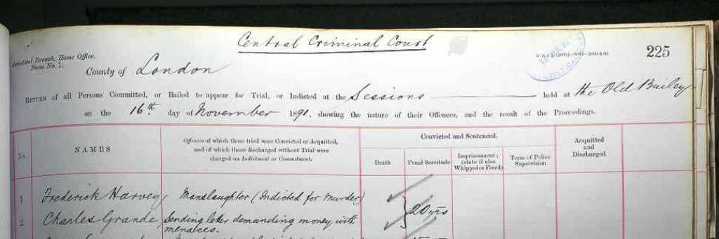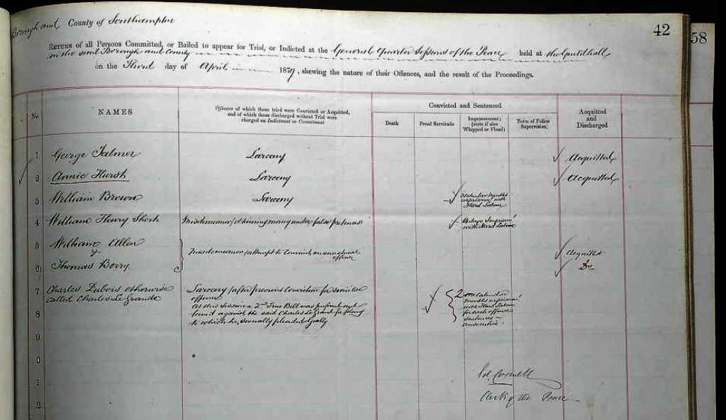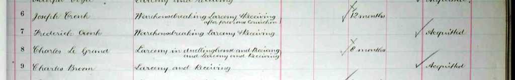 In case there are those who have never seen this, herewith the record of registration of Charles Le Grand's offence after trial, on 1st November 1886,