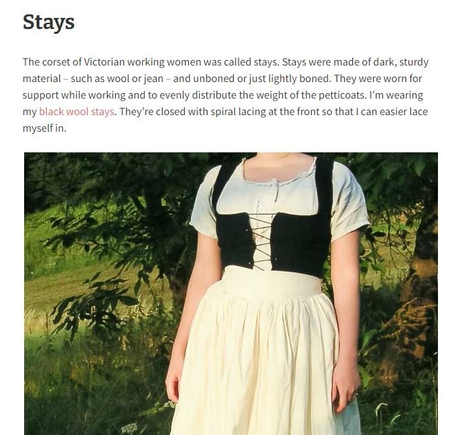 So, the stays were fastened, and with them on the wounds were visible. Does that mean the stays were long and loose, and the killer lifted them up and poked the knife underneath? No, because unlike the charming item depicted the other day, Nichols' stays were not the full-length kind...