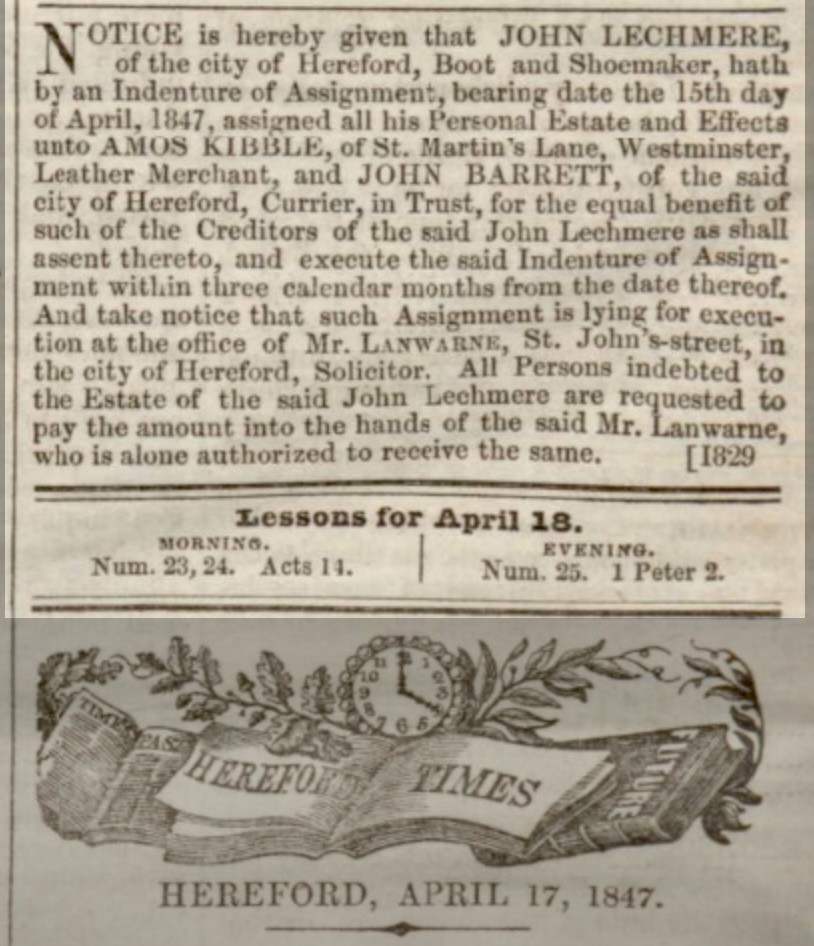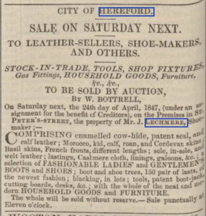 Just over a month later the shoemaker went out of business, and shortly afterwards he seems to have abandoned his wife and two small children.