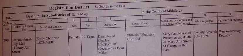 And it’s Charles Lechmere for me, because that is a name he used repeatedly. And not just on official forms. Anyone who attended his wedding or his christening, anyone who knew him through his kids and later anyone who knew him through his shop and coffee rooms or attended his funeral would have associated him with the name Lechmere.