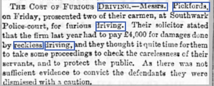 Pickfords drivers were notorious for their ‘lordly indifference’. They were the kings of the Victorian road and were forever getting into scrapes. Their vans/wagons displayed a number to enable the easier identification of their drivers.